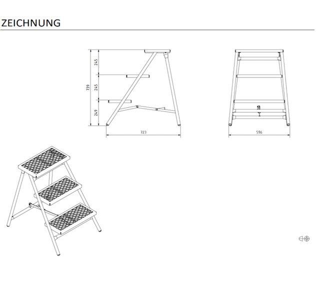 Der Dreitritt ist eine standsichere, feuerverzinkte kleine Tritteiter, die Ihnen mehr